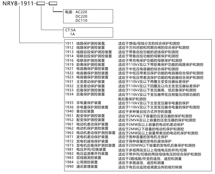 NRYB-1900系列保護(hù)測(cè)控裝置訂貨信息